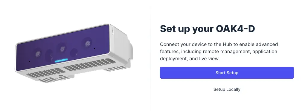 Now that the device is configured and the status LED is solid blue, you can proceed with the next steps to quickly get started with the OAK4 device.Click here to get started