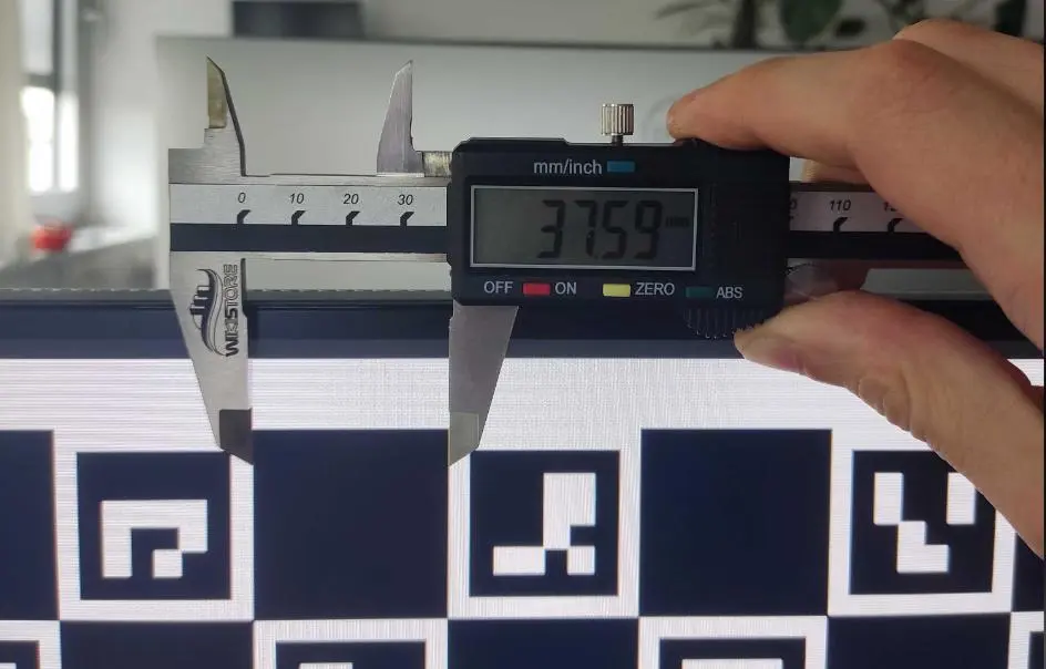We recommend displaying the charuco board on a TV or a large flat monitor. Larger screens are better, as they allow more charuco markers to be visible in the image, typically improving calibration accuracy. Depending on the screen size, we suggest displaying the following charuco board in full-screen:- 24" screen Charuco board