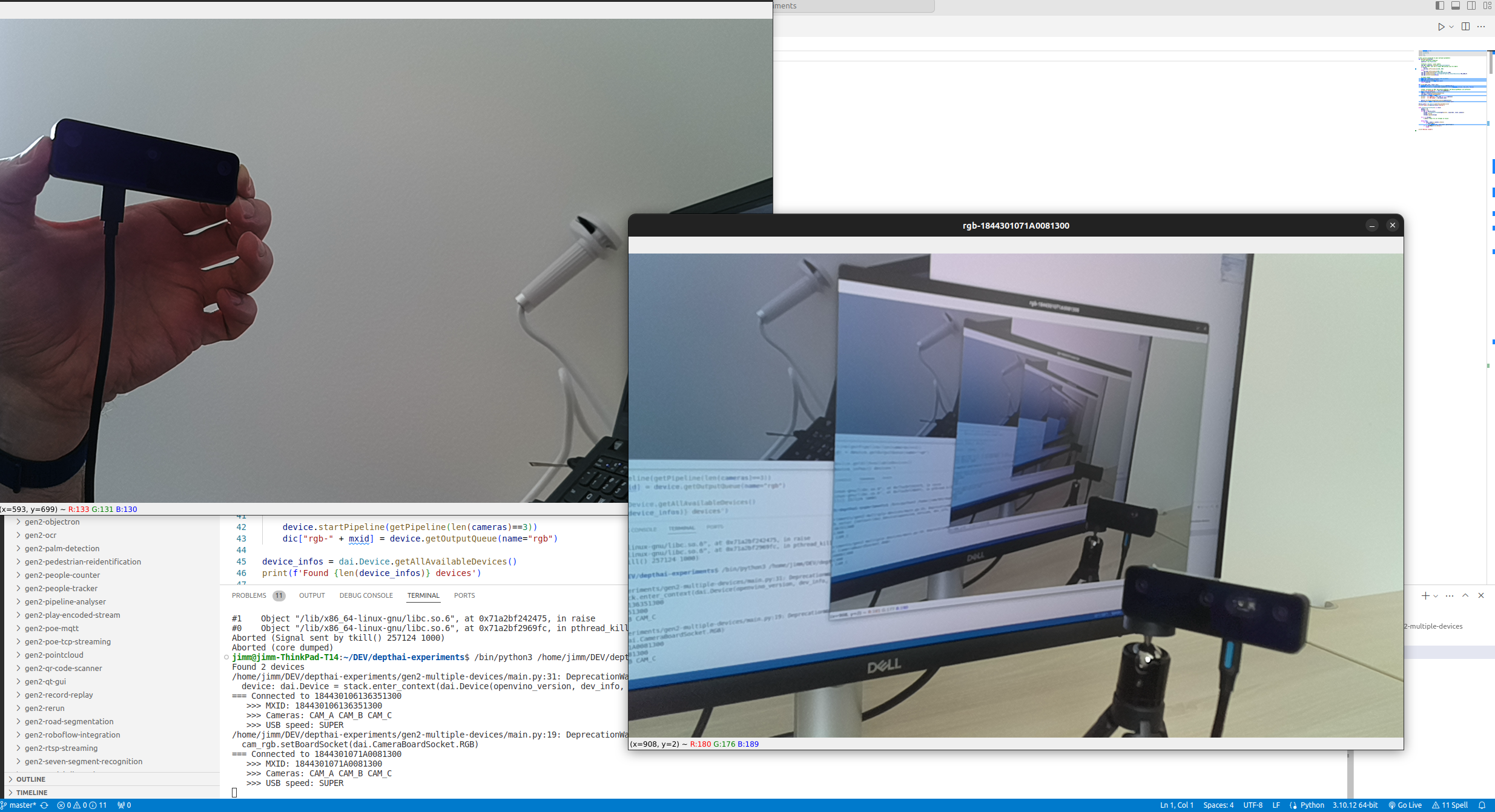 45 cv2.imshow(f"video_device{i}", videoIn.getCvFrame())