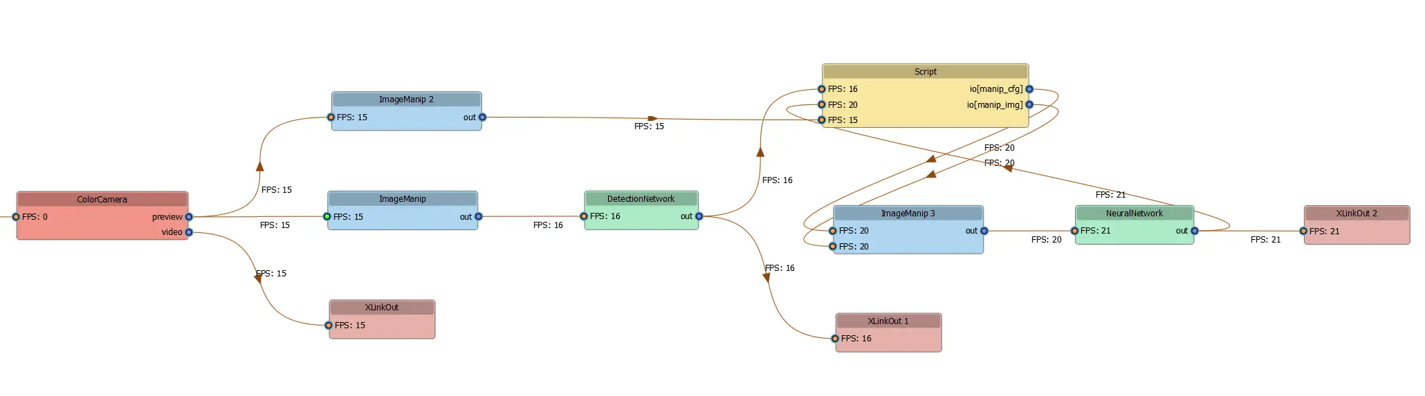 An excellent tool for debugging and providing insight into a DepthAI pipeline and its inner workings is DepthAI Pipeline Graph. It is a tool that visualizes the DepthAI pipelines with FPS outputs.