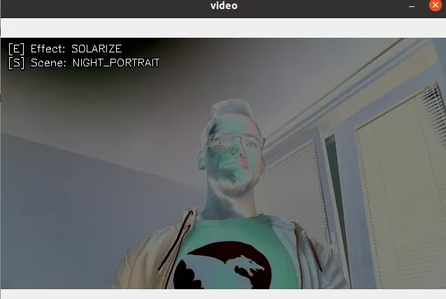 This example shows how to select ColorCamera scene and effect.swill switch between available scenesewill switch between available effects (currently not available)