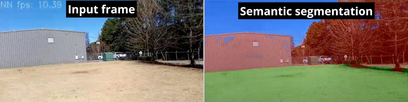 In such a "negative" system, the semantic segmentation system is trained on all the surfaces that are not objects. So anything that is not that surface is considered an object - allowing the navigation to know its location and take commensurate action (stop, go around, turn around, etc.). So the semantic depth is extremely valuable for object avoidance and navigation planning applications.In the image above, a person semantic segmentation model is running on RGB frames, and, based on the results, it crops depth maps only to include the person's depth.
